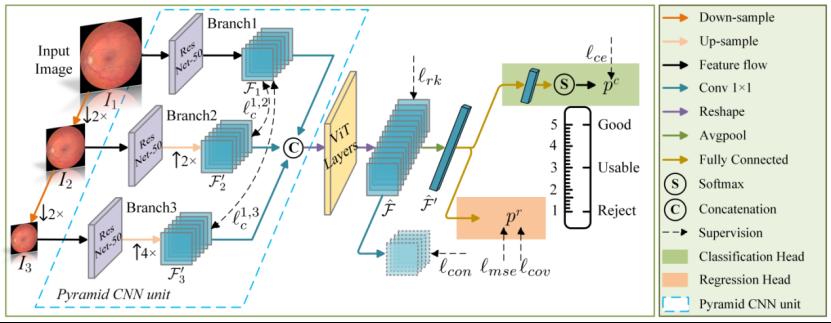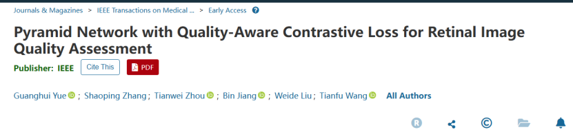 近日,乐竞平台医学部岳广辉副教授在医学图像处理领域顶级期刊IEEE Transactions on Medical Imaging (TOP期刊,中科院一区,IF=8.9)上发表题为“Pyramid Network with Quality-Aware Contrastive Loss for Retinal Image Quality Assessment”的学术论文。青年教师岳广辉副教授担任第一作者,研究生张绍萍为第二作者。乐竞平台为第一作者单位和通讯单位。