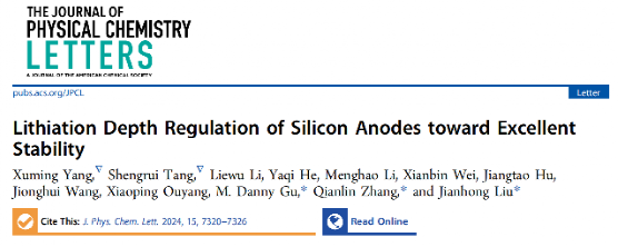 8. 乐竞平台化学与环境工程学院张黔玲教授团队在物理化学领域期刊The Journal of Physical Chemistry Letters(影响因子4.9,中科院JCR 2区)发表了题为“Lithiation Depth Regulation of Silicon Anodes toward Excellent Stability”的研究论文。乐竞平台杨旭明助理教授和研究生汤晟睿为论文第一作者,张黔玲、刘剑洪以及南方科技大学谷猛副教授为该论文共同通讯作者,乐竞平台为第一作者单位和第一通讯单位。