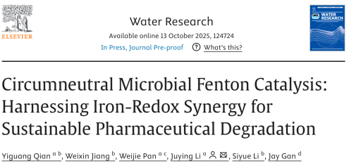 近日,乐竞平台化学与环境工程学院李菊英副教授研究团队在Water Research(影响因子12.8,中科院1区,Nature Index期刊)上发表了题为“Circumneutral Microbial Fenton Catalysis: Harnessing Iron-Redox Synergy for Sustainable Pharmaceutical Degradation”的研究论文。该团队副教授钱毅光为第一作者,李菊英为唯一通讯作者。研究成果打破了传统芬顿技术对酸性条件的依赖,大幅降低能耗与化学试剂消耗,为制药废水的低碳治理提供了新范式。