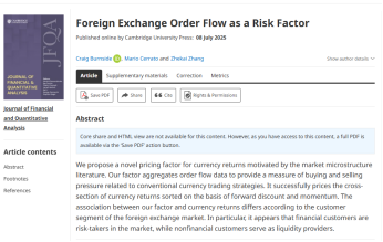 该论文基于市场微观结构理论,提出了一种新颖的货币回报定价因子。该因子通过汇总订单流数据,量化了与常规货币交易策略相关的买卖压力,它能有效解释基于远期贴水和动量排序的货币回报截面差异。研究发现:该因子与货币回报的关联性在外汇市场的不同客户群体中存在差异:金融机构客户扮演风险承担者角色,而非金融客户则充当流动性提供者。(文章链接:www.doi.org/10.1017/S0022109024000796)